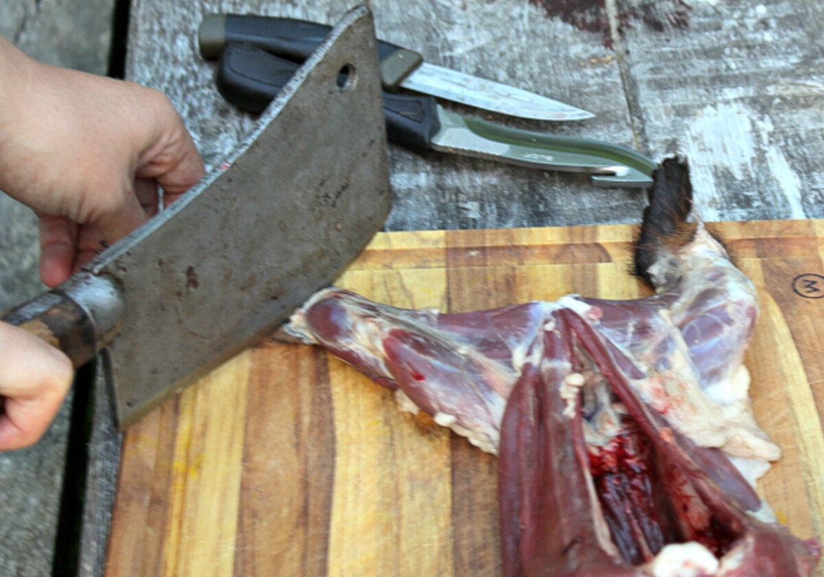 If you’re at the point of cutting up your own groundhog, you’re definitely doing enough cooking to justify owning one. Lacking a cleaver, however, a very sharp pair of scissors or garden shears will work for an animal as small as a groundhog.