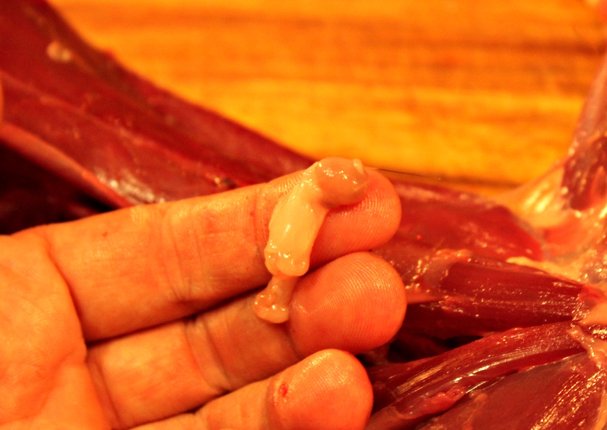 You shouldn’t need a knife at this point, but be sure to reach all the way up to the top of the chest cavity to get everything in one piece. If necessary, reach back in and scrape any remaining lung fragments from the inside of the ribs.