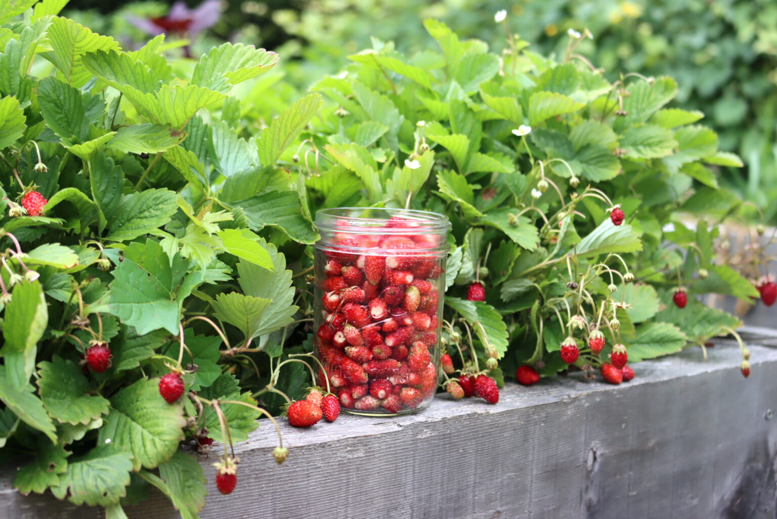 Strawberries spread quickly and can be kept safe from pests in raised beds. They make a great ground cover and can be harvested early in the season. We grow multiple types of strawberries, including pineberries and alpine strawberries, along with normal heirlooms in our raised beds.